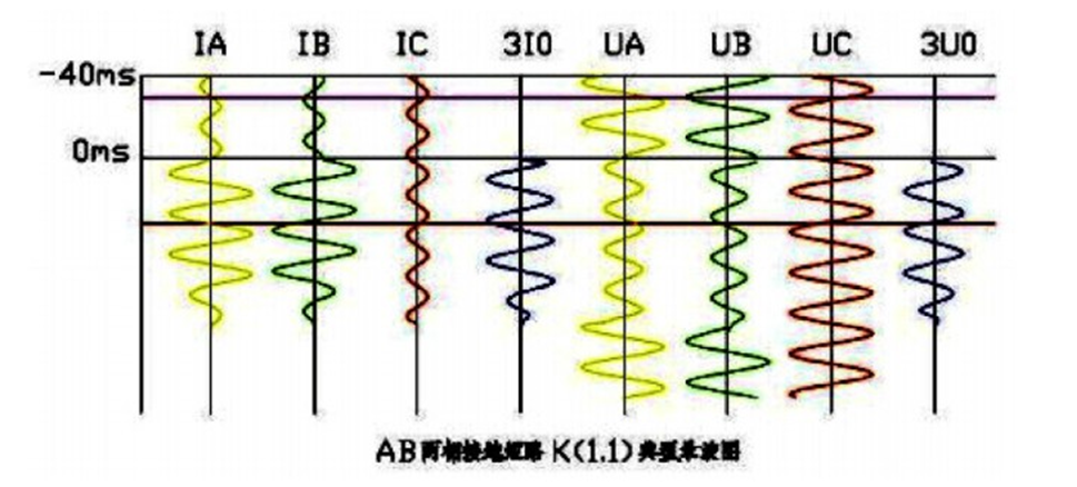 兩相短路故障錄波圖特點: