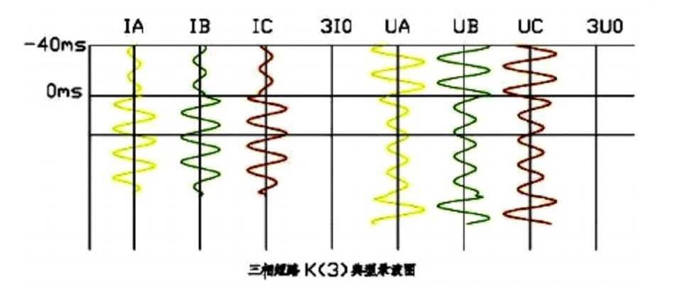三相短路故障錄波圖特點: